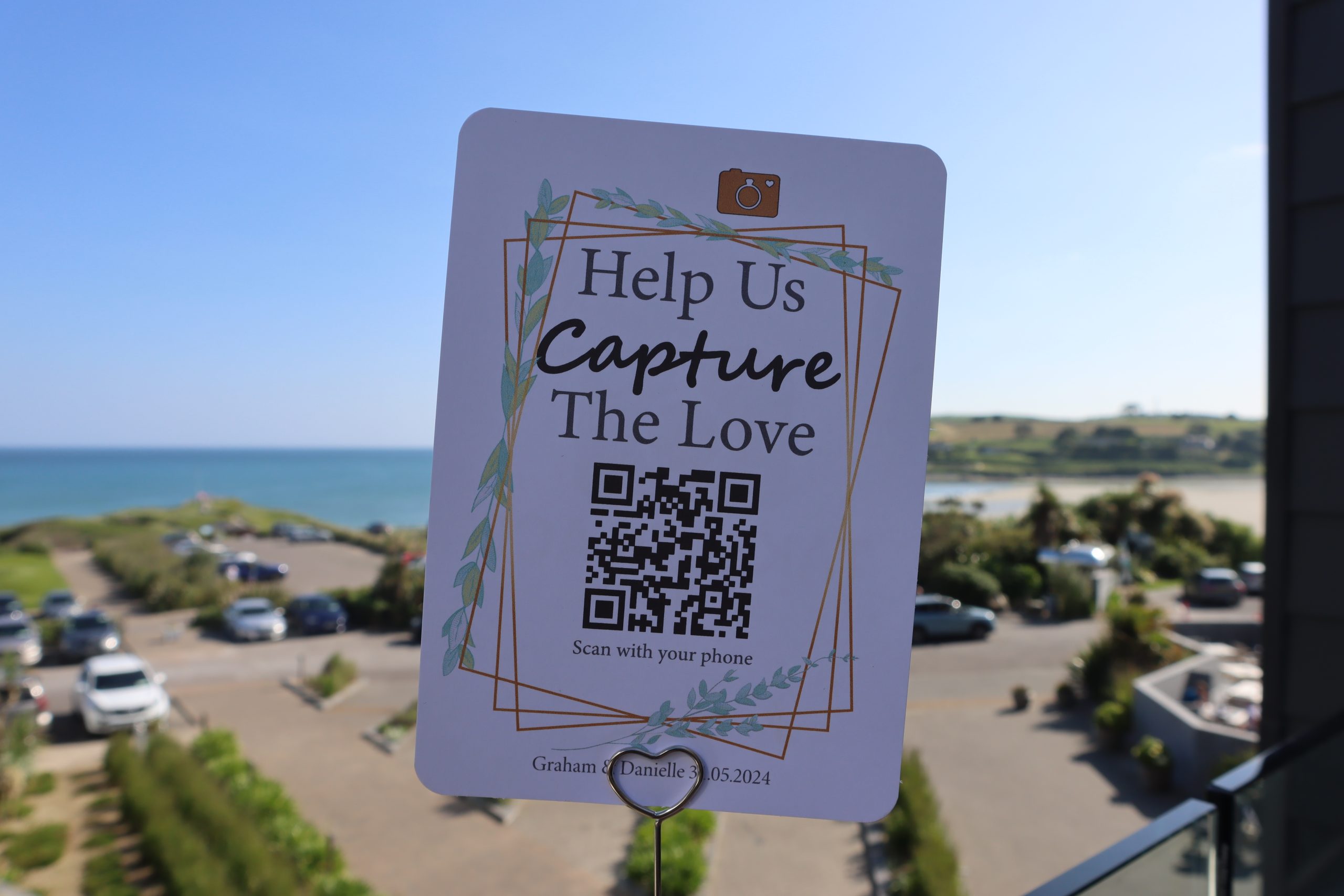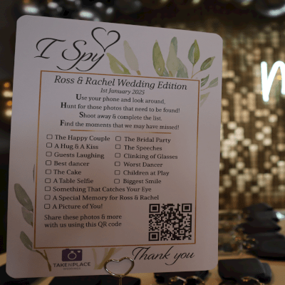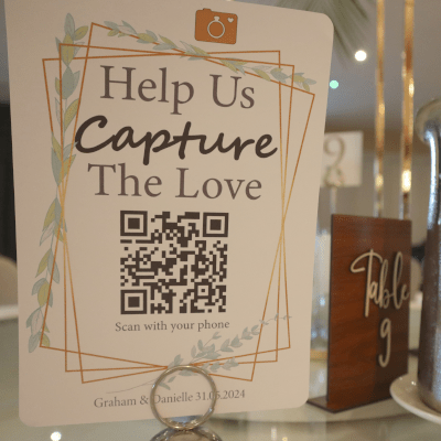 Professionally printed package containing beautiful bespoke wedding QR code table cards to be shared amongst your guests, on your tables & across your wedding venue. Making collecting those special guests’ memories effortless!